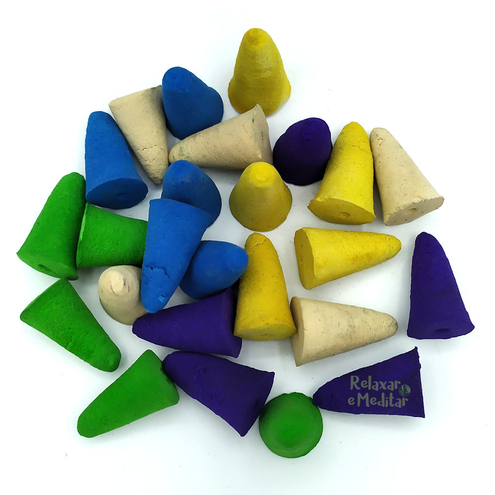 Os incensos são produzidos manualmente, de forma artesanal e o seu formato pode variar. Diferente de incensos produzidos a partir de madeira/carvão, oferecemos incensos cone com aromas de verdade!